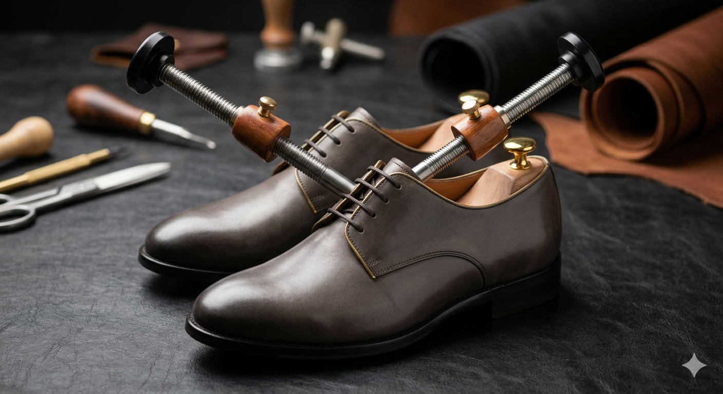전문 제골기와 가죽 연화제를 사용하여 신발의 발볼을 정밀하게 확장합니다.